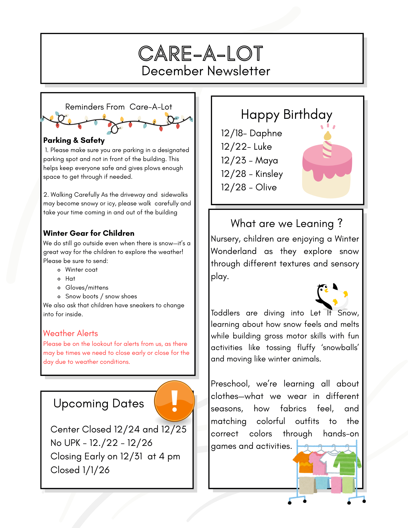 As we head into this chilly Western New York winter, our children, families, and staff continue to be the heart of Care A Lot. ❄️ Your little ones are truly a gift to us, and we are so grateful for the trust you place in our team each day.